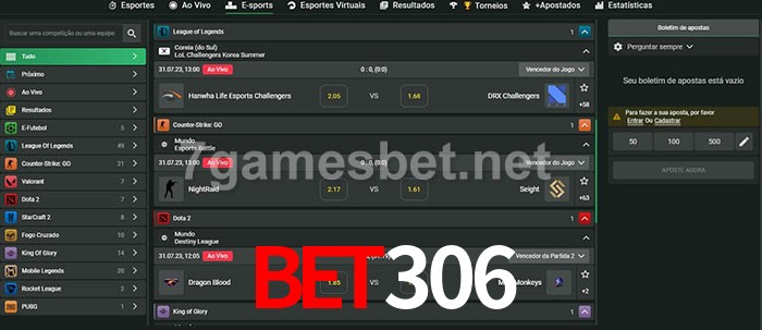 A aposta bet306 oferece aos jogadores a experiência mais conveniente de apostas em eSports!